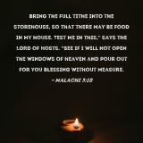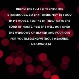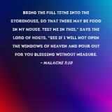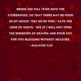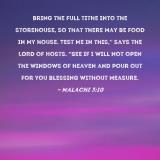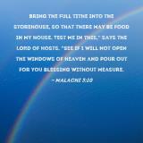 Bring the full tithe into the storehouse, so that there may be food in My house. Test Me in this," says the LORD of Hosts. "See if I will not open the windows of heaven and pour out for you blessing without measure.