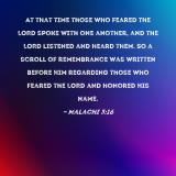 At that time those who feared the LORD spoke with one another, and the LORD listened and heard them. So a scroll of remembrance was written before Him regarding those who feared the LORD and honored His name.