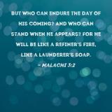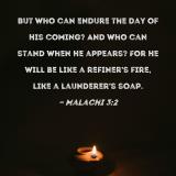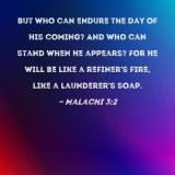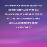 But who can endure the day of His coming? And who can stand when He appears? For He will be like a refiner's fire, like a launderer's soap.