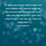 Yet from the days of your fathers, you have turned away from My statutes and have not kept them. Return to Me, and I will return to you," says the LORD of Hosts. "But you ask, 'How can we return?'