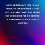 But when Jesus saw this, He was indignant and told them, "Let the little children come to Me, and do not hinder them! For the kingdom of God belongs to such as these.