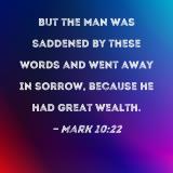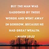 But the man was saddened by these words and went away in sorrow, because he had great wealth.