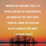 When he heard that it was Jesus of Nazareth, he began to cry out, "Jesus, Son of David, have mercy on me!"