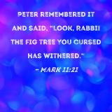 Peter remembered it and said, "Look, Rabbi! The fig tree You cursed has withered."