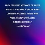 They defraud widows of their houses, and for a show make lengthy prayers. These men will receive greater condemnation."