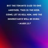 But the tenants said to one another, 'This is the heir. Come, let us kill him, and the inheritance will be ours.'