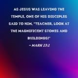 As Jesus was leaving the temple, one of His disciples said to Him, "Teacher, look at the magnificent stones and buildings!"