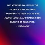 And wishing to satisfy the crowd, Pilate released Barabbas to them. But he had Jesus flogged, and handed Him over to be crucified.