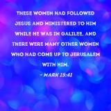 These women had followed Jesus and ministered to Him while He was in Galilee, and there were many other women who had come up to Jerusalem with Him.