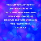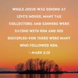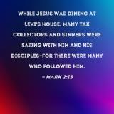 While Jesus was dining at Levi's house, many tax collectors and sinners were eating with Him and His disciples--for there were many who followed Him.