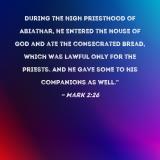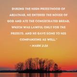 During the high priesthood of Abiathar, he entered the house of God and ate the consecrated bread, which was lawful only for the priests. And he gave some to his companions as well."