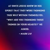 At once Jesus knew in His spirit that they were thinking this way within themselves. "Why are you thinking these things in your hearts?" He asked.