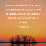 Jesus also said to them, "Does anyone bring in a lamp to put it under a basket or under a bed? Doesn't he set it on a stand?