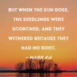 But when the sun rose, the seedlings were scorched, and they withered because they had no root.