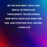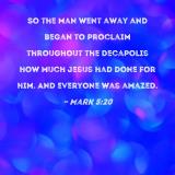 So the man went away and began to proclaim throughout the Decapolis how much Jesus had done for him. And everyone was amazed.