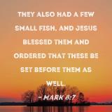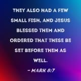 They also had a few small fish, and Jesus blessed them and ordered that these be set before them as well.