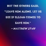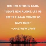 But the others said, "Leave Him alone. Let us see if Elijah comes to save Him."