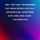"Sir," they said, "we remember that while He was alive that deceiver said, 'After three days I will rise again.'