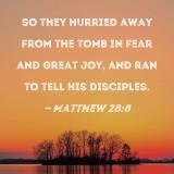 So they hurried away from the tomb in fear and great joy, and ran to tell His disciples.