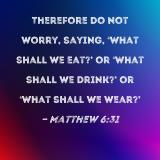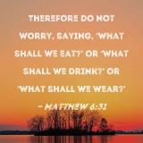 Therefore do not worry, saying, 'What shall we eat?' or 'What shall we drink?' or 'What shall we wear?'