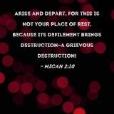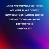 Arise and depart, for this is not your place of rest, because its defilement brings destruction--a grievous destruction!