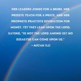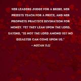 Her leaders judge for a bribe, her priests teach for a price, and her prophets practice divination for money. Yet they lean upon the LORD, saying, "Is not the LORD among us? No disaster can come upon us."