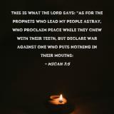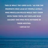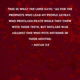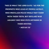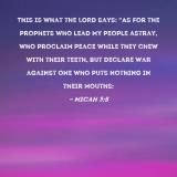This is what the LORD says: "As for the prophets who lead My people astray, who proclaim peace while they chew with their teeth, but declare war against one who puts nothing in their mouths: