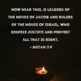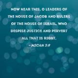 Now hear this, O leaders of the house of Jacob and rulers of the house of Israel, who despise justice and pervert all that is right,
