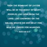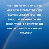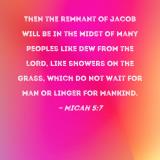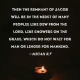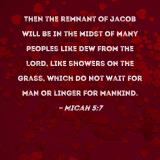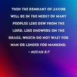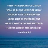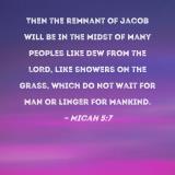 Then the remnant of Jacob will be in the midst of many peoples like dew from the LORD, like showers on the grass, which do not wait for man or linger for mankind.