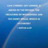 Can I forget any longer, O house of the wicked, the treasures of wickedness and the short ephah, which is accursed?