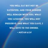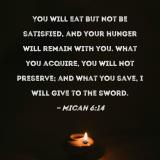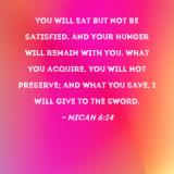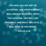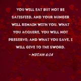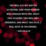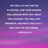 You will eat but not be satisfied, and your hunger will remain with you. What you acquire, you will not preserve; and what you save, I will give to the sword.