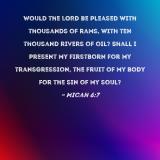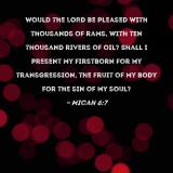 Would the LORD be pleased with thousands of rams, with ten thousand rivers of oil? Shall I present my firstborn for my transgression, the fruit of my body for the sin of my soul?