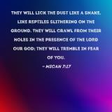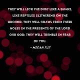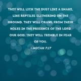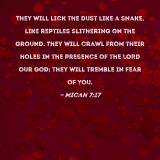 They will lick the dust like a snake, like reptiles slithering on the ground. They will crawl from their holes in the presence of the LORD our God; they will tremble in fear of You.