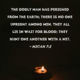 The godly man has perished from the earth; there is no one upright among men. They all lie in wait for blood; they hunt one another with a net.