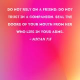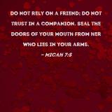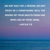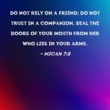 Do not rely on a friend; do not trust in a companion. Seal the doors of your mouth from her who lies in your arms.