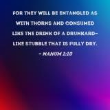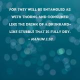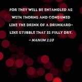 For they will be entangled as with thorns and consumed like the drink of a drunkard--like stubble that is fully dry.