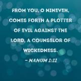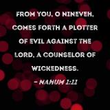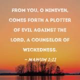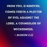 From you, O Nineveh, comes forth a plotter of evil against the LORD, a counselor of wickedness.