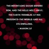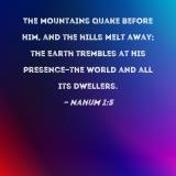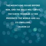 The mountains quake before Him, and the hills melt away; the earth trembles at His presence--the world and all its dwellers.
