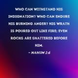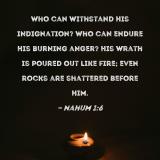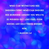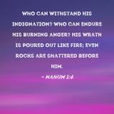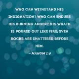 Who can withstand His indignation? Who can endure His burning anger? His wrath is poured out like fire; even rocks are shattered before Him.