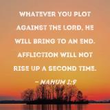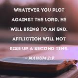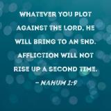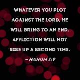 Whatever you plot against the LORD, He will bring to an end. Affliction will not rise up a second time.