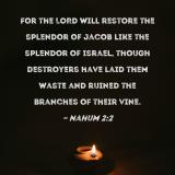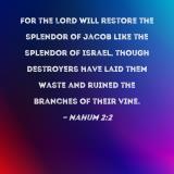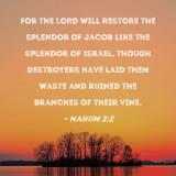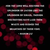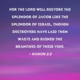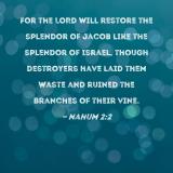 For the LORD will restore the splendor of Jacob like the splendor of Israel, though destroyers have laid them waste and ruined the branches of their vine.