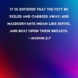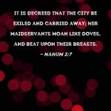 It is decreed that the city be exiled and carried away; her maidservants moan like doves, and beat upon their breasts.