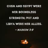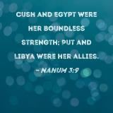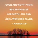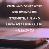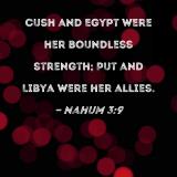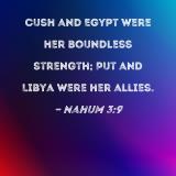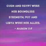 Cush and Egypt were her boundless strength; Put and Libya were her allies.