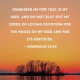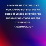 Remember me for this, O my God, and do not blot out my deeds of loving devotion for the house of my God and for its services.
