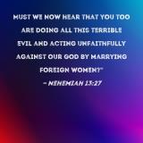 Must we now hear that you too are doing all this terrible evil and acting unfaithfully against our God by marrying foreign women?"