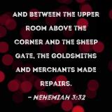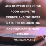 And between the upper room above the corner and the Sheep Gate, the goldsmiths and merchants made repairs.