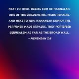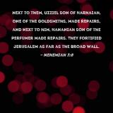 Next to them, Uzziel son of Harhaiah, one of the goldsmiths, made repairs, and next to him, Hananiah son of the perfumer made repairs. They fortified Jerusalem as far as the Broad Wall.