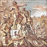 who were rebuilding the wall. The laborers who carried materials worked with one hand and held a weapon with the other.