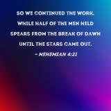 So we continued the work, while half of the men held spears from the break of dawn until the stars came out.