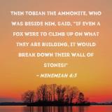 Then Tobiah the Ammonite, who was beside him, said, "If even a fox were to climb up on what they are building, it would break down their wall of stones!"